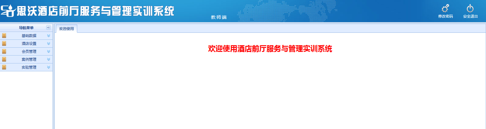 思沃酒店前廳服務(wu)與管理(li)模擬實(shi)訓平(ping)臺系統以(yi)學生(sheng)酒店前廳工作(zuo)崗位任務(wu)為(wei)基礎(chu),以(yi)案例(li)動畫結合的(de)模式開(kai)展(zhan)情景模擬實(shi)訓,學生(sheng)可(ke)在(zai)該教學軟件設置的(de)虛擬酒店環境中,完(wan)成(cheng)預定、入住辦理(li)、續住、退房、換(huan)房、會(hui)員(yuan)管理(li)、故(gu)障報(bao)修、投(tou)訴處理(li)、黑名單等(deng)相關案例(li)任務(wu)的(de)操(cao)作(zuo)。該教學平(ping)臺軟件可(ke)以(yi)逼真(zhen)的(de)體驗實(shi)際酒店前廳工作(zuo)的(de)過程。本公司為(wei)了(le)更好滿足高(gao)校(xiao)的(de)教學需求(qiu),也會(hui)根據高(gao)校(xiao)的(de)需求(qiu)提供(gong)酒店管理(li)實(shi)訓室解決方案,