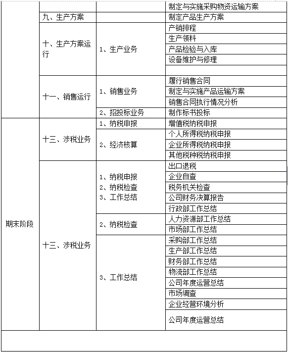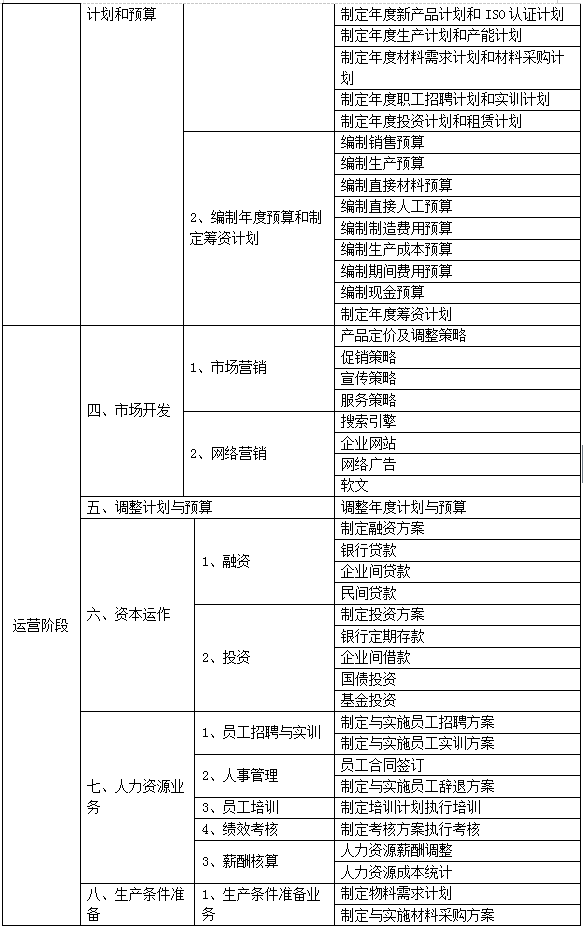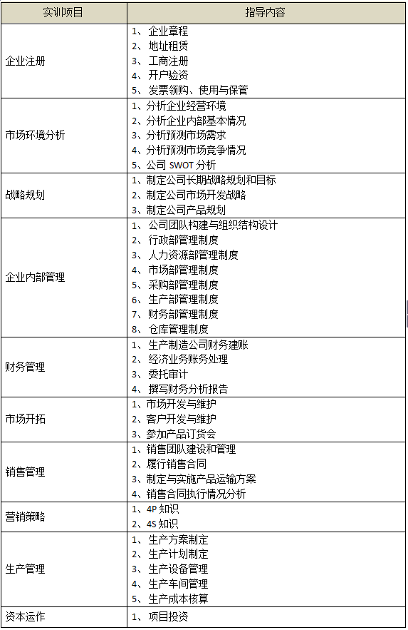 跨專(zhuan)業(ye)(ye)(ye)平(ping)(ping)臺(tai)(tai)主要由搭建(jian)平(ping)(ping)臺(tai)(tai)運(yun)行環境、制造(zao)(zao)企業(ye)(ye)(ye)運(yun)營(ying)、行政業(ye)(ye)(ye)務(wu)和金融業(ye)(ye)(ye)務(wu)等(deng)(deng)幾(ji)大部(bu)分(fen)組成。以現代制造(zao)(zao)行業(ye)(ye)(ye)為藍本,設置總經理(li)辦(ban)(ban)公室、銷售部(bu)、生產部(bu)、采購(gou)部(bu)、倉儲部(bu)、外貿部(bu)、市場部(bu)、財務(wu)部(bu)、人才資(zi)(zi)源(yuan)部(bu)、企業(ye)(ye)(ye)投資(zi)(zi)融部(bu)等(deng)(deng)十大制造(zao)(zao)企業(ye)(ye)(ye)職能部(bu)門;真(zhen)實(shi)模擬行政辦(ban)(ban)事部(bu)門,提供工商局(ju)、稅務(wu)局(ju)、會計事務(wu)所、銀行、物流、保(bao)險公司(si)、貸代公司(si)等(deng)(deng)辦(ban)(ban)事場所;系統虛擬扮演(yan)公安(an)局(ju)、質量(liang)與技術監督局(ju)、勞動與社會保(bao)障(zhang)局(ju)、原材(cai)料供應商、海關、商檢、外匯管理(li)局(ju)、船公司(si)等(deng)(deng)服務(wu)性部(bu)門行業(ye)(ye)(ye)。攘(rang)括(kuo)了(le)與制造(zao)(zao)行業(ye)(ye)(ye)有(you)關的所有(you)相關行政辦(ban)(ban)事部(bu)門和服務(wu)性行業(ye)(ye)(ye)。